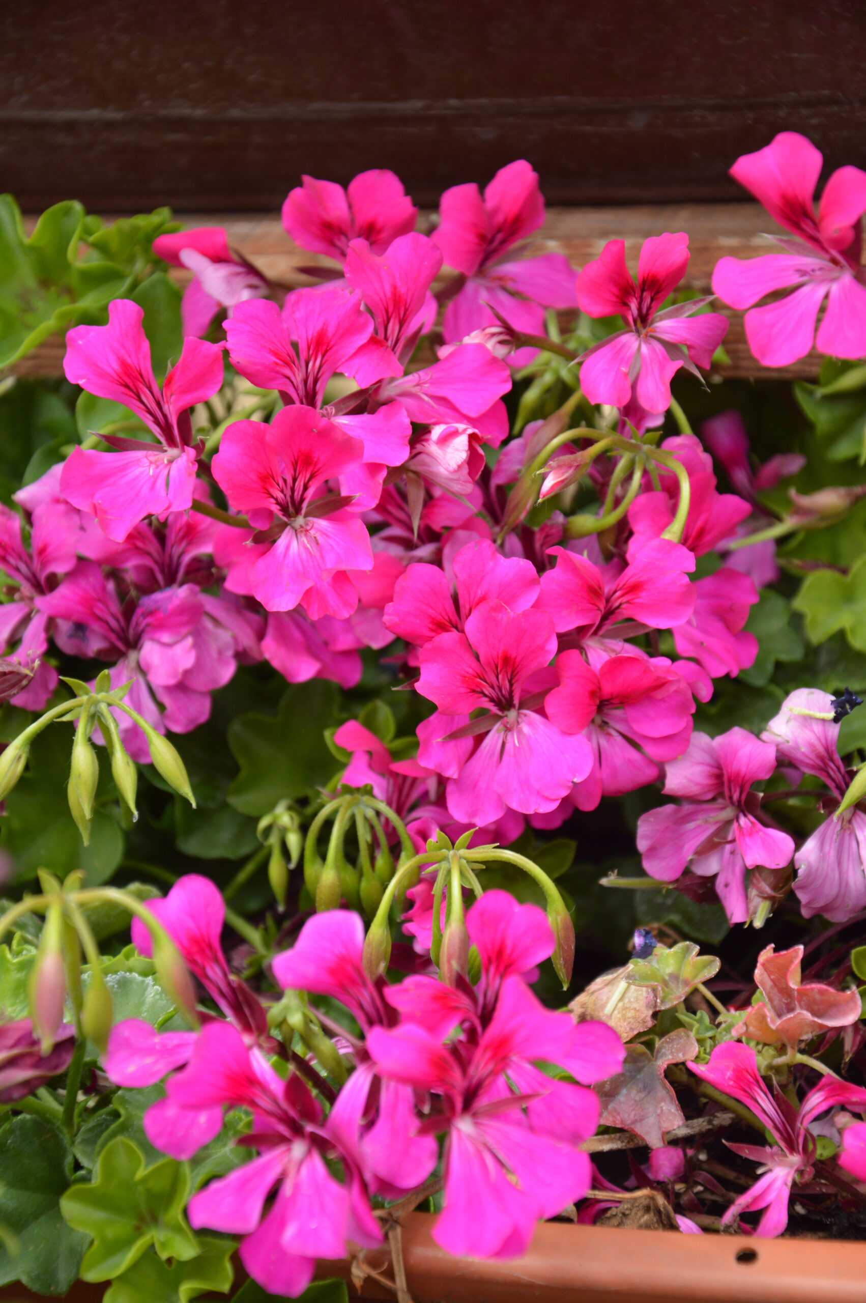 - Pelargonie bluszczolistne -również jedna z bardzo popularnych grup. Jej nazwa nawiązuje do liści-kształtem i kolorem przypominających właśnie liście bluszczu. Najczęściej stosowana na balkonach, tarasach, zawieszonych donicach ze względu na zwisający pokrój. Długie pędy tworzą kaskady mierzące nawet do 120 cm. Tak jak pelargonie rabatowe obficie i bujnie kwitną, jednak kwiaty tworzące kwiatostany są pojedyncze i płaskie. Jeśli masz stanowisko bardziej cieniste, wietrzne, to te pelargonie sobie doskonale na nim poradzą. Ta grupa pelargonii będzie idealna dla zapominalskich – rośliny te dobrze znoszą przesuszenie gleby.